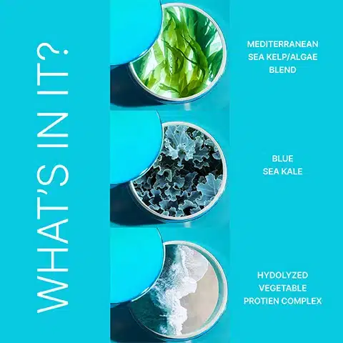 Aqua (Water), Stearyl Alcohol, Dimethicone, Cetyl Alcohol, Stearamidopropyl Dimethylamine, Butylene Glycol, Dicetyldimonium Chloride, Behentrimonium Chloride, Propanediol, Hydrolyzed Vegetable Protein PG-Propyl Silanetriol, Citric Acid, Chlorella Pyrenoidosa Extract, Chondrus Crispus (Carrageenan) Extract, Undaria Pinnatifida Extract, Laminaria Saccharina Extract, Ceteareth-20, Dimethiconol, Phenoxyethanol, PPG-26-Buteth-26, Apigenin, Oleanolic Acid, Biotinoyl Tripeptide-1, Crambe Maritima (Blue Sea Kale) Leaf Extract, Fragrance, Chlorphenesin, PEG-40 Hydrogenated Castor Oil, Isopropyl Alcohol, Caprylyl Glycol, Propylene Glycol, Potassium Benzoate, Potassium Sorbate, Disodium EDTA, Benzyl Salicylate, Alpha-isomethyl ionone, CI 42090, CI 60730.